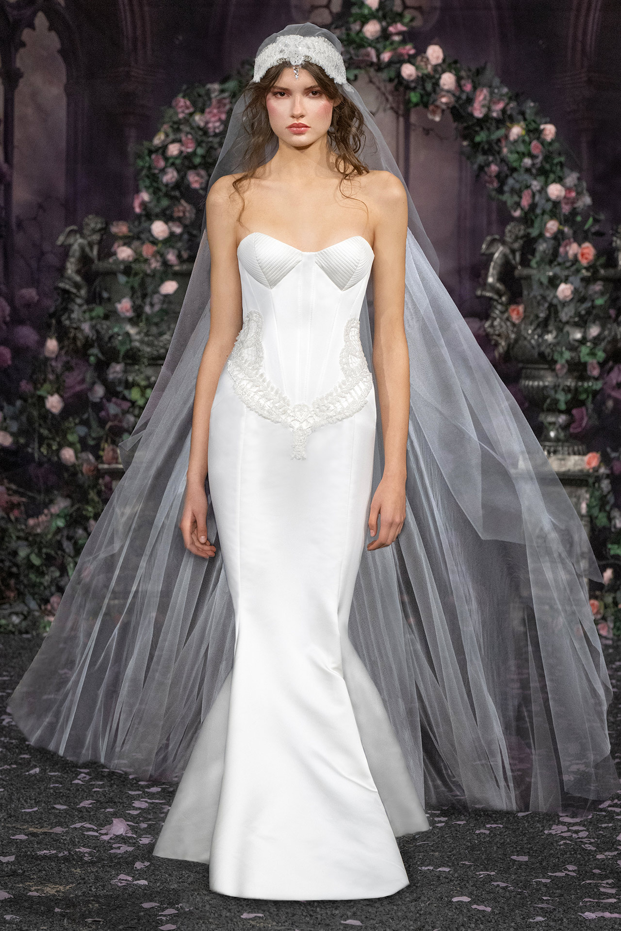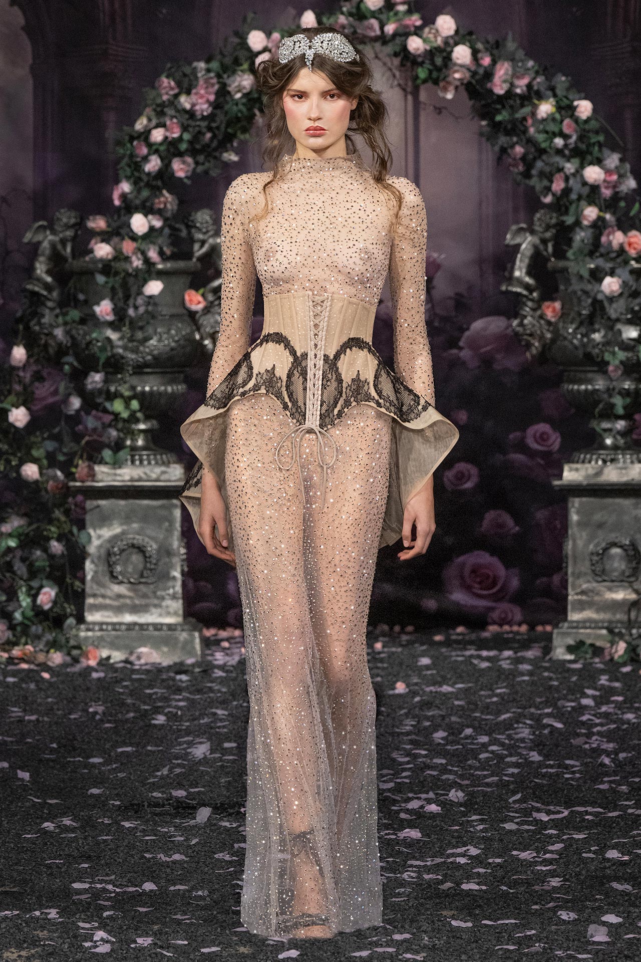 “ She was a divine Saint in armour sent from God bearing the sword of heaven “ Jeanne d’Arc, the visionary warrior who, as a young girl, answered a divine call to lead her country, takes centre stage as the muse of AADNEVIK's latest Autumn / Winter 2026 collection. In the year 1429, she turned the tide of the Hundred Years’ War, giving life to the prophecies of an armed virgin ending France’s suffering. The pieces evoke her enchanting grace, her radiant power, and the mysterious force that guided her — shifting between the fragility of a girl and the unshakable might of a heroine. Each garment breathes life into Jeanne’s story, capturing her delicate vulnerability and her celestial ambience through sweeping, poetic silhouettes, intricate detailing, and opulent textures. “We wanted to create pieces that reawaken the mythic figure of Jeanne, allowing her to transcend time and space, to become more than a historical symbol: she is a living, breathing testament to the might of spirit and divine will,” say the designer duo Hila Aadnevik and Kristian Aadnevik. “Her story is one of godly intervention, tragic loss, and eternal fortitude, and we bring her vision to life through a sophisticated, deeply emotional collection. A testament to the complexities of femininity, it celebrates a woman whose heroism continues to resonate as a symbol of light, vigour, and passion.” Ethereal layers of soft tulle evoke a connection to the heavens, while corsetry, sculpted to perfection, evoke the iron strength of a warrior, cinching the waist in a gesture of both sensuality and courage, an eternal reminder of the force that lies within. Each garment is a narrative of a young woman guided by a higher calling, torn between human fragility and sacred power. These pieces are a visual testament to the complexity of her destiny: fierce yet fragile, holy yet earthly. Rich in symbolism and emotion, this collection is painted in a palette of endless black, pearly white, wild rose pinks and shimmering silvers reflecting the mysticism and haunting beauty of Jeanne’s journey, while the delicate texture of silks and intricate French lace suggest the otherworldly beauty of her visions. Intricate crystal detailing catches the light, reminiscent of the angelic radiance that illuminated Jeanne’s path, while beaded embellishments shimmer like stars — fleeting yet eternal — marking the wearer as part of a legacy greater than herself. The entire collection is meticulously created by hand in AADNEVIK’s London Atelier, where each individual piece is carefully brought to life using the finest traditional couture techniques and artesian craftmanship ensuring the highest quality, precision, and exceptional detail.